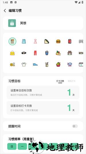 3、选中习惯后可直接编辑,包括自定义图标、设置重复频率等细节。