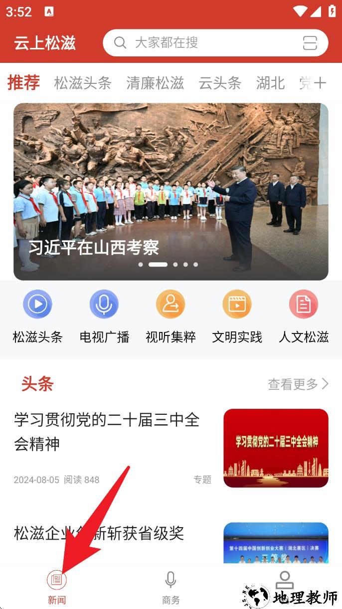 1. 打开App之后,默认进入首页。在首页您可以浏览新闻头条,并通过底部菜单栏选择新闻、商贸等版块。