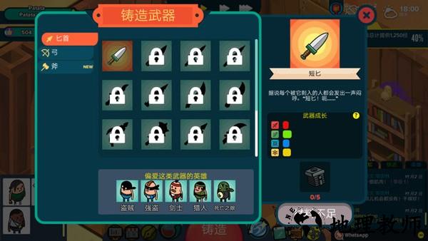 神圣土豆的武器店免费版是一款魔幻探险武器经营游戏,主要以魔性搞笑的画风为主,为玩家带来了魔幻的世界,主要以魔性的土豆为主要形象,通过完成任务与挑战,收集更多武器、枪械、法宝等装备本身,可以收集更多相关的器材、材料锻造研究不同攻击力的武器,赚取更多钱财将你的武器店开建起来,感兴趣的玩家快来地理教师下载网下载体验一下吧!