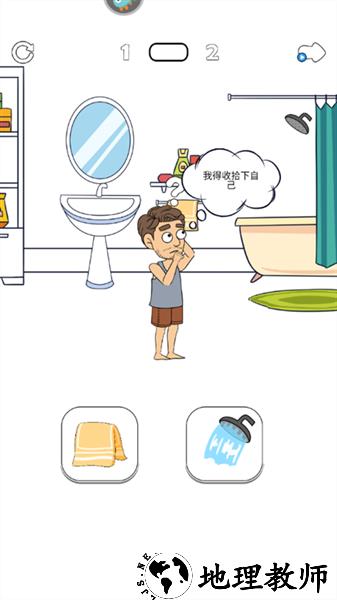 3、我们因为睡过头了,如果想要整理自己的仪容,显然洗澡时间是不够的,所以直接用毛巾擦一下。
