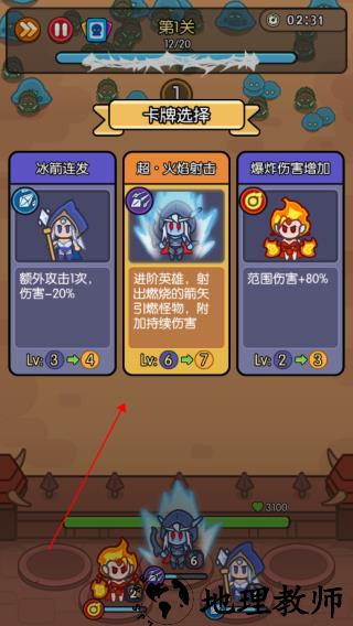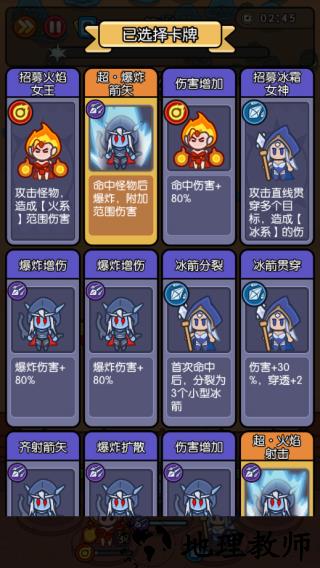 3、当能量值满的时候,会出现卡牌供玩家选择,卡牌特性各不一样,玩家根据卡牌的技能可选择适用的,
