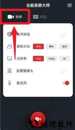 1、点击主界面中的录屏按钮,即可进入录制设置界面,支持设置方向、分辨率等参数。