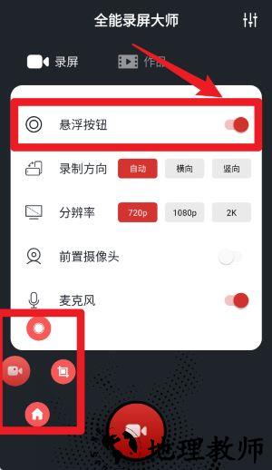 3、打开悬浮按钮开关后,屏幕左侧会出现快捷按钮,方便快速开始、暂停或结束录制。