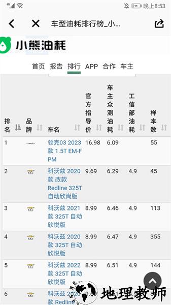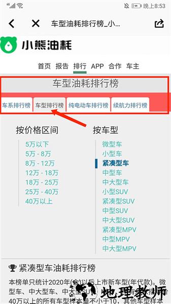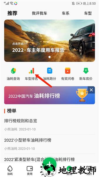 3、进入车型油耗排行榜界面,选择一个榜单,