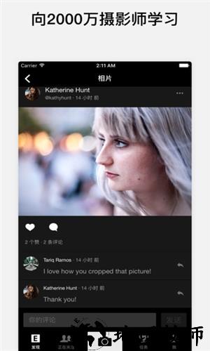 3. 活跃的摄影社区:eyeem拥有庞大的用户群体和活跃的社区氛围,用户可以在这里分享作品、交流心得,还可以参加各种摄影比赛和挑战。