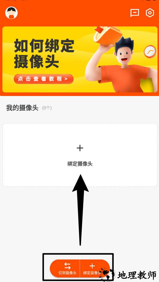 2、在应用首页,用户可通过点击绑定摄像头按钮添加新的摄像头设备,并可根据提示查看操作教程,方便快捷完成设置。