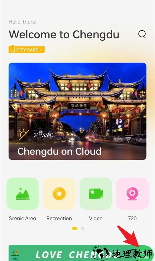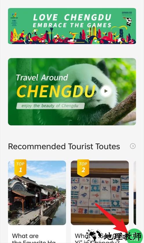 3、英文界面切换功能位于底部,方便国际游客快速了解成都文旅资讯。
