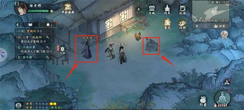 2、当我们跟着主线第一次到这个地方,会先是触发主角被大黄哥欺负抢蒲公英的情景对话,然后我们跟乐无愁对话,她会要求我们下到右边的枯井里面,第一次下井,跟着任务捡道具上来,然后她要求我们再下去一次,这次会出现一条密道。