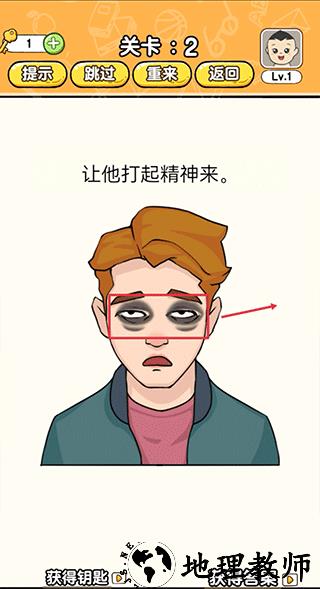 第二关:把男生眼睛上的黑眼圈挪开即可通关