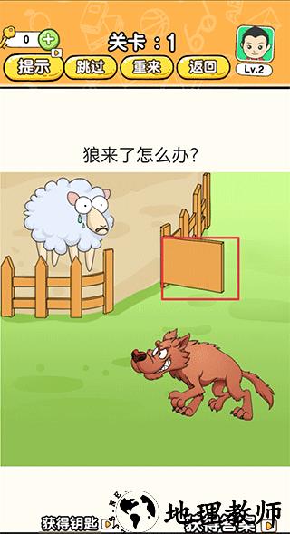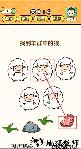 第四关:将右下角的肉,移动到第二只羊上即可找出狼