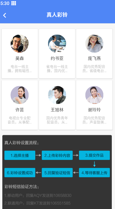 2、真人彩铃由真人主播配音,可定制专属彩铃内容;