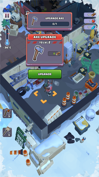4、在这里就能升级你的斧头,这样就能破坏更多的建筑,获得资源来升级,前提是你的充足的物资。