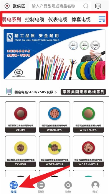 1、首页可切换不同电缆分类,点击分类查看相应产品图片及型号,方便快速找到所需线缆。