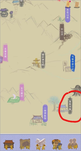 1、首先进入游戏,不用选皇族学千军万马,进入地图页,把所有地方都走一遍,把所有可以免费领的宝箱盒子全部领一遍,差不多有6万铜币,去落英书院买一本逍遥游,去背包界面学了,放到技能栏里(落英书院位置:地图左下角略微往右一点)。