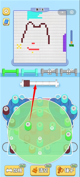 当柱子被毛线完全包裹后,系统会自动将这些毛线填充到上方的谜题框架内。游戏过程中,谜题的填充进度会实时显示在屏幕上方。