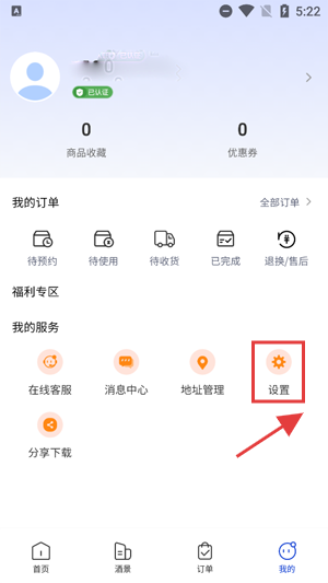 1、打开联联周边游APP,在个人中心找到并点击设置功能;