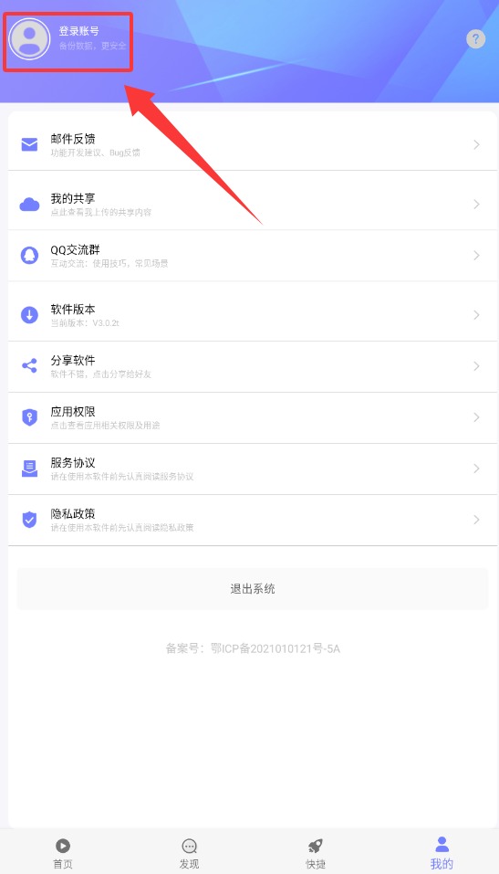 2、 在个人中心页面选择登录选项,系统将跳转至账号验证界面。