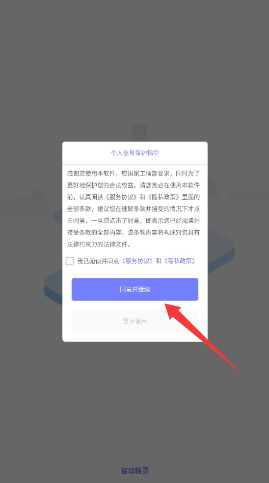 1、 首次启动应用需阅读并同意用户协议,点击底部确认按钮进入主界面。