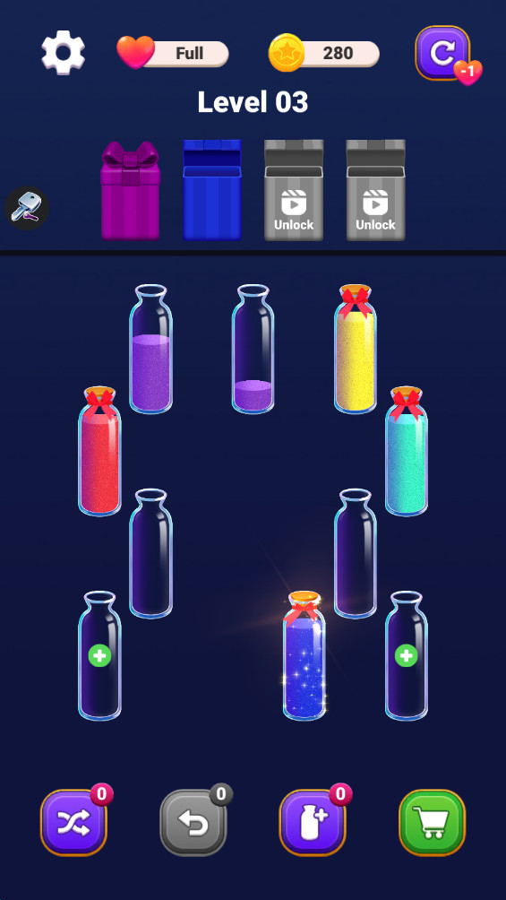 1. 创新物理交互:沙粒流动受重力、粘滞力影响,分类时需预判沙粒堆叠形态,例如深色沙粒易覆盖浅色沙粒,需优先分离。