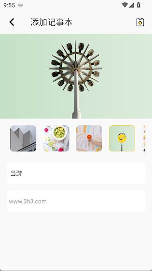 3、点击+添加记事本,输入名称和描述,选择封面,点击右上角按钮保存