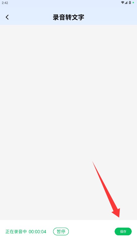 4、录音完成后点击保存按钮,应用会将音频内容快速转换为文字并显示结果。