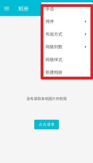 3、点击右上角菜单图标可展开更多功能选项,自定义相册排序、布局与新建相册操作。