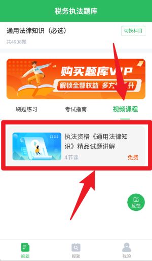 2、切换至视频课程标签,可免费学习精品讲解课程,帮助用户理解核心知识点并掌握考试解题技巧。