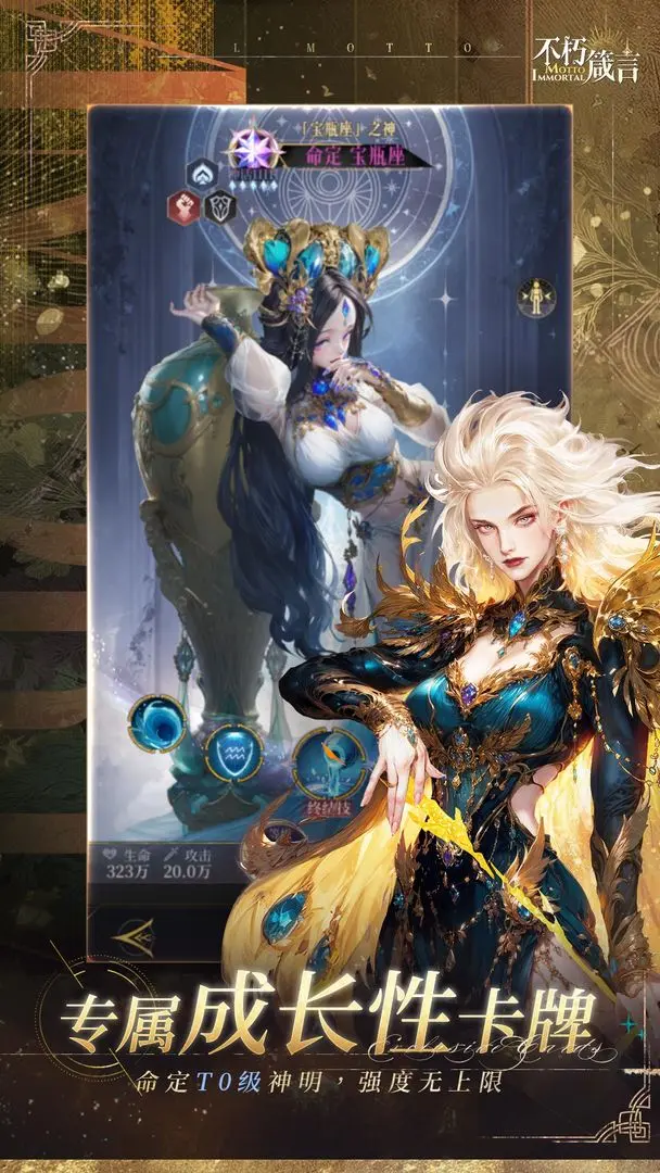 《不朽箴言精简版》是一款以神秘学为核心题材的卡牌策略手游,融合了星象、塔罗牌、占卜、周易等玄学元素,构建出充满魔幻色彩的伊莫塔尔大陆。游戏采用“繁复宝石风”美术风格,将魔幻、写实、华美等元素巧妙融合,呈现出细腻且富有力量感的视觉效果,尤其是西方神明的Live2d立绘,以精美大气的姿态展现独特异域风情。玩家将扮演“异界旅者”,通过收集、培养来自不同文明的神明角色,组建策略阵容对抗被“幽影”侵蚀的黑暗势力,体验放置养成、策略战斗、肉鸽探索等多元玩法交织的沉浸式冒险。