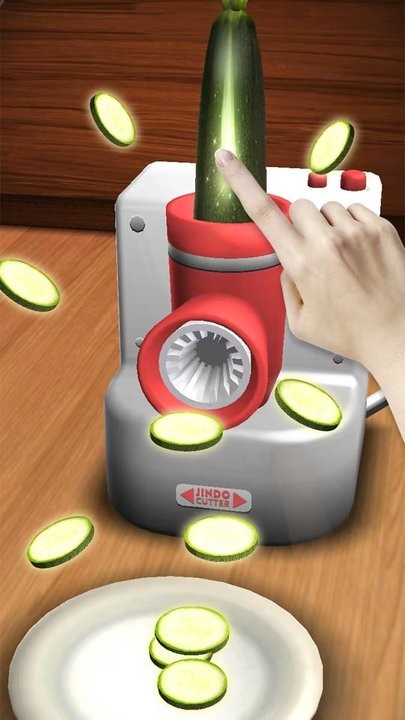 2. 场景互动技巧:雕刻关卡中,木质纹理方向影响切割流畅度,沿木纹方向操作可减少卡顿;削黄瓜关卡需控制刀具倾斜角度,保持45°斜切可最大化连续得分。