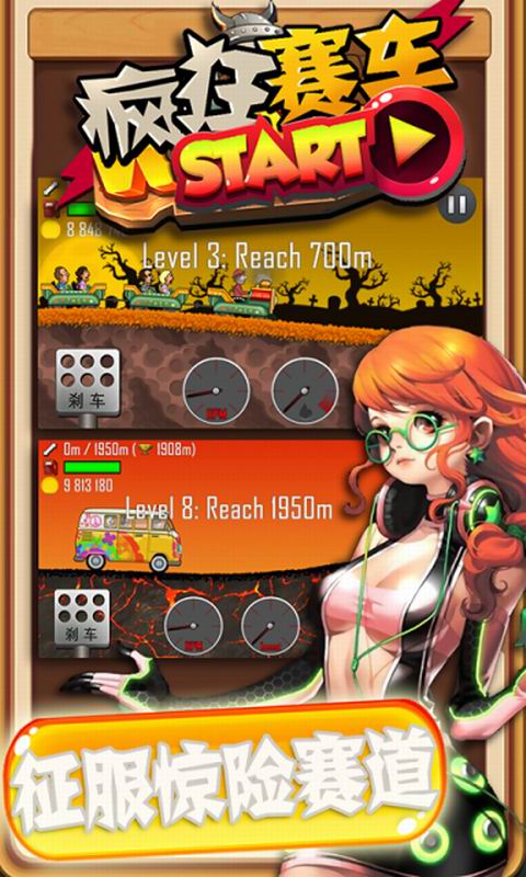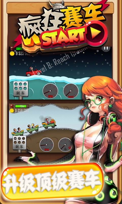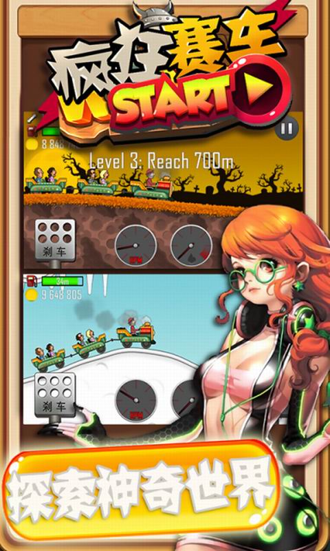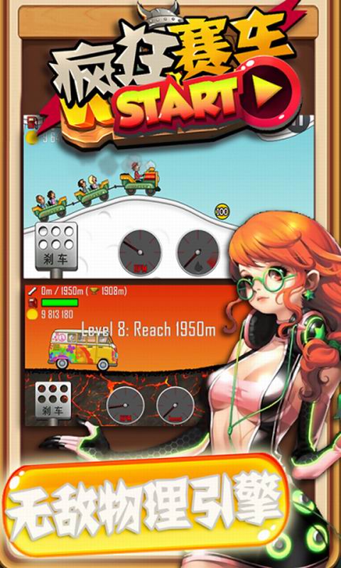 快来感受物理的魅力和速度的快感吧!《疯狂赛车》是一款涵盖基础物理设计的赛车竞速类游戏。一位充满报复的爬坡车手,他喜欢尝试挑战各种高山!无论是月球的较高点还是崎岖的岩洞或是熔岩喷发的火山口。通过大胆的动作来赢得奖励并收集金币来获得更酷更炫更高性能的赛车吧!需要注意你的脖子会在比赛途中被折断,而且赛车的燃油也会很快用完的哦!