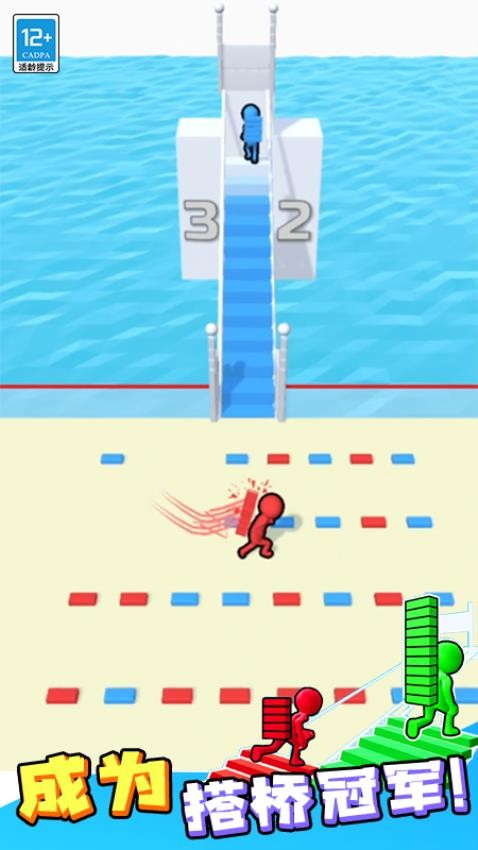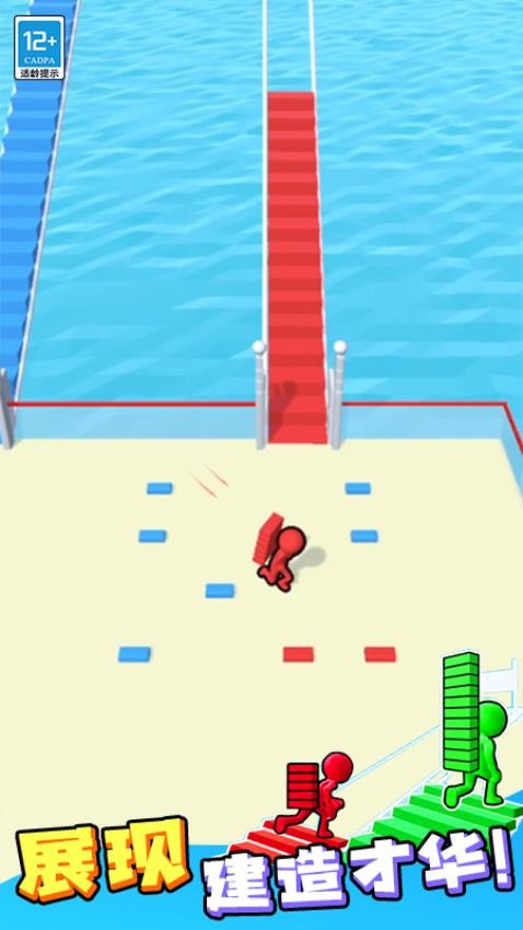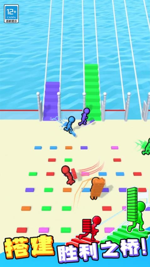 3. 道具利用:场景中随机刷新的道具箱包含“加速鞋”(提升移动速度)、“磁铁”(自动吸附附近砖块)、“护盾”(免疫一次攻击)等,优先拾取以占据优势。
