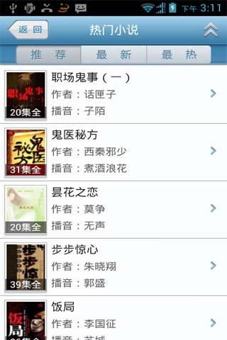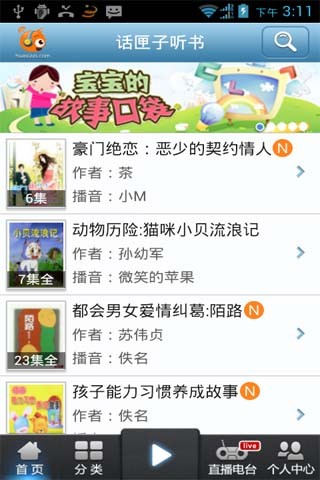 话匣子听书:较全的教育类有声读物!较多的少儿启蒙内容!较热门的网络小说!——全新Android版话匣子听书,给您带来全新的听书体验,解放眼睛,享受听书新感觉!