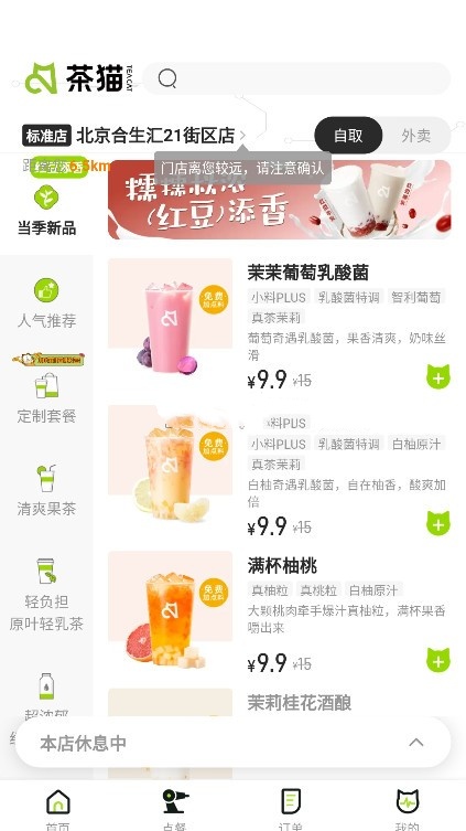 3、支持查询附近门店位置信息与实时营业状态,规划取餐行程。