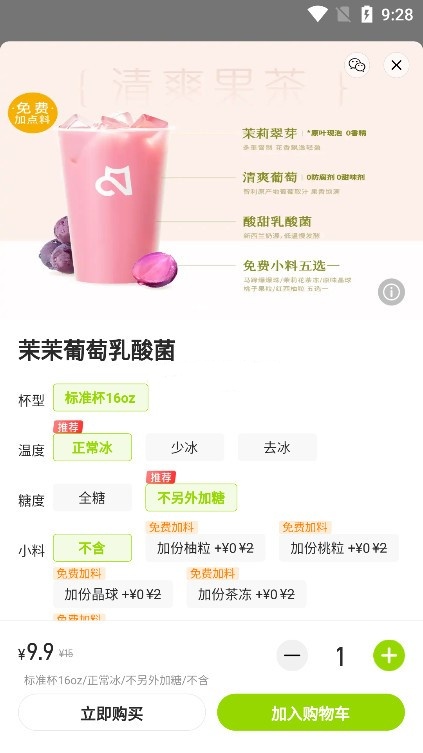 3、将选中饮品加入购物车,核对订单信息无误后完成支付流程。
