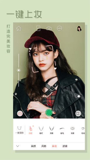 2、同步上妆:素颜也能拍大片,涵盖各类眼妆、口红和修容,满足你所有少女心,从化妆小白晋升变妆达人!