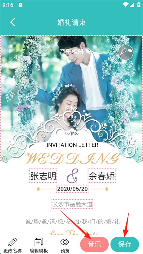 6、点击左下角“音乐”选项,选择喜爱的背景音乐,确认后点击“保存”即可完成制作。