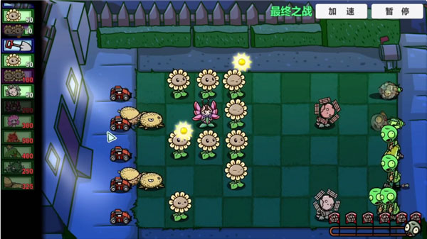 7、利用暂停功能调整阵容,确保每个格子的植物都能发挥作用;