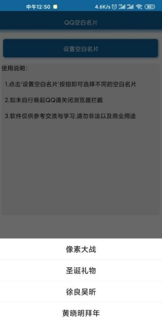 qq空白名片一键清空设置软件是一款专为android用户设计的便捷工具,它能够帮助用户快速清空qq个人名片上的所有资料,让用户的qq资料面板回归简约与清新。这款软件操作简便,无需复杂的设置步骤,只需一键操作即可实现资料清空,非常适合追求简洁风格或希望保护个人隐私的用户。