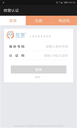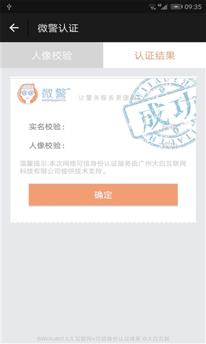 实现“人证同一性”校验,认证范围覆盖全国14亿人口,认证过程不会传输公民隐私资料。微警认证有开放接口,供其他Android客户端快速接入,共同加速以二代证为信任根的可信互联网络体系