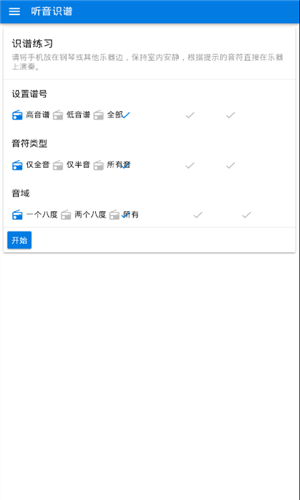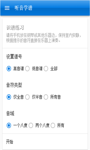 2、在演奏前,可设置谱号、音符类型、音域,设置之后,