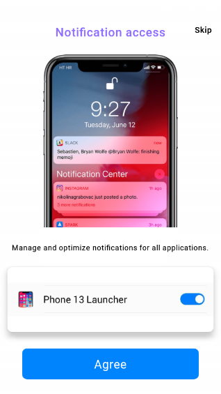 2、为提升模拟真实度,建议手动开启通知使用权限;若不愿授权,可点击“Skip”跳过此步骤。