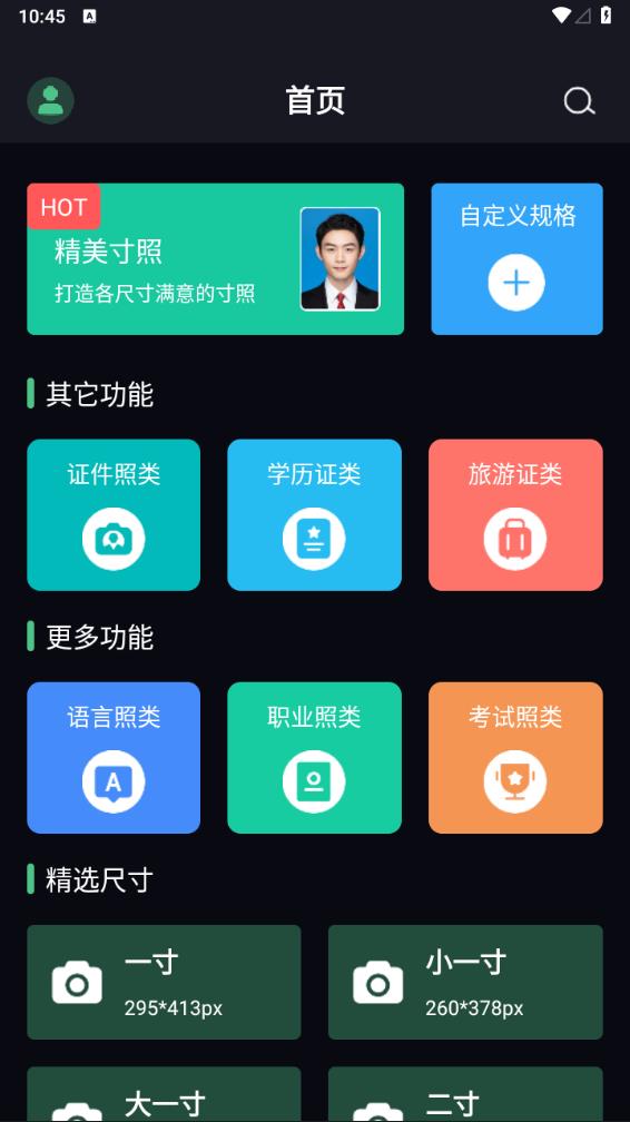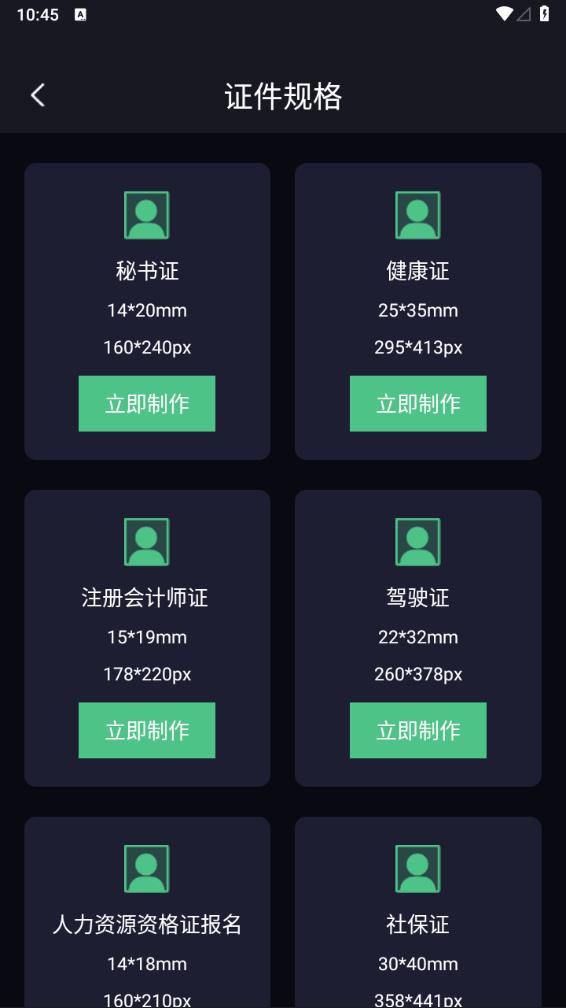 2、自定义规格库:内置多种国际通用证件照尺寸,覆盖各行各业需求。