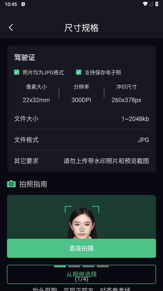1、多规格一键切换:选择所需尺寸,无论是1寸、2寸还是护照、驾照等多种格式都能轻松满足。
