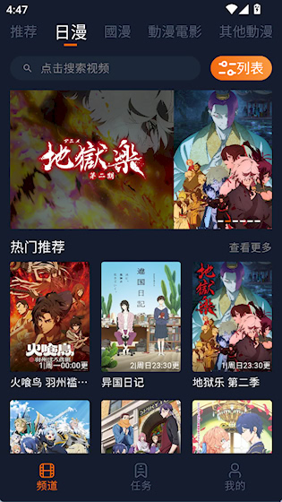 搜索框支持关键词联想与模糊匹配,快速定位目标内容。首页根据浏览习惯推送相关作品,帮助发现潜在感兴趣的番剧或漫画。