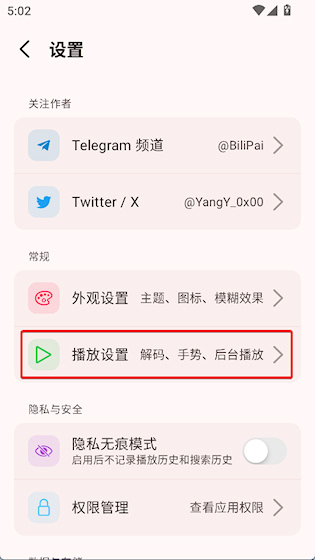 2、找到播放设置,点击进入