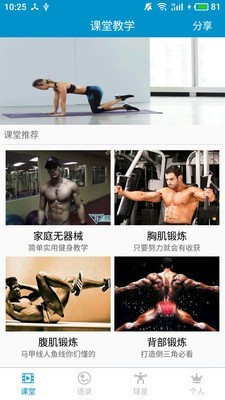 健身教学APP对于想要健身瘦身的小伙伴们来说非常实用,这款软件中有很多专业健身教练,让您足不出户就可以体验专业的健身服务。专业的健身将全身分为14个锻炼部位,想练哪里就练哪里,近千种器械锻炼视频,总有一种适合你,自动记录健身数据,管理你的身材。