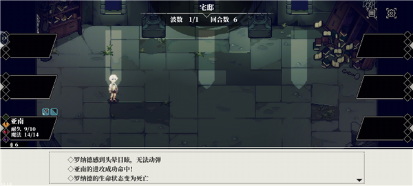 1.开局移动位置到最远+使用道具“手提灯”(作为易燃物)+闪避(也可以反击,但是初始主角反击数值太低,成功概率太小了)。