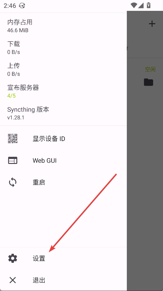2、进入设置界面点击syncthing选项