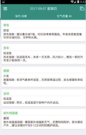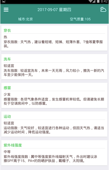 3. 生活建议:根据天气情况提供穿衣、紫外线、舒适度等生活建议,帮助用户更好地应对天气变化。