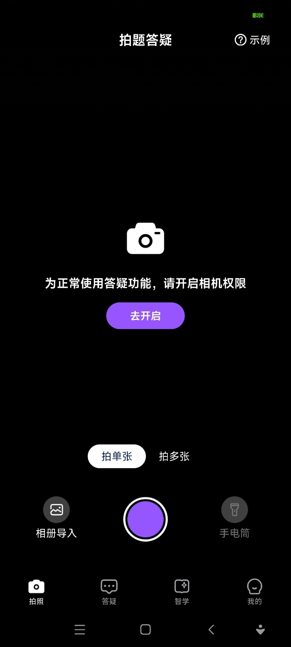 3、拍照答疑:支持拍照答疑模式,对准题目拍摄即可搜索知识点并解答;